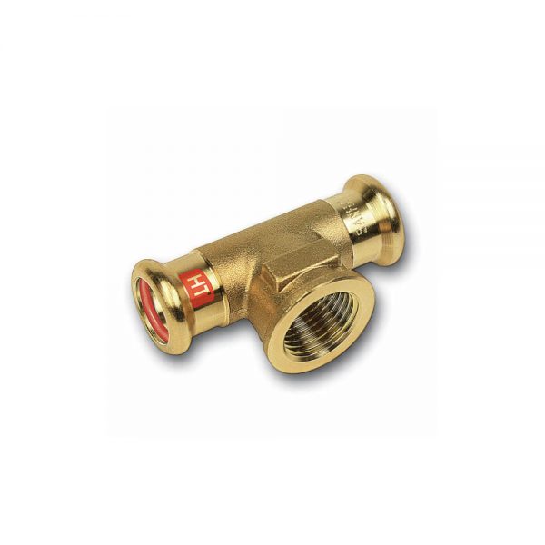 System press fittings from copper and copper alloys for copper pipes according to EN 1057 for solar and high-temperature applications for compressed air. SANHA®-Press Solar system fittings have red moulded sealing rings made from FKM (fluoro and perfluoro elastomers) for temperatures of up to 200 °C. SANHA®-Press Solar system fittings are additionally marked by a red “HT” printed on the outside.